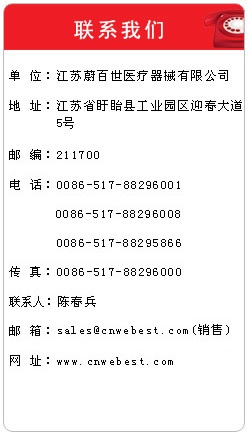 聯(lián)系人:陳春兵 地址:江蘇省盱眙縣工業(yè)園區(qū)迎春大道5號(hào) 郵編:211700 互聯(lián)網(wǎng)藥品信息服務(wù)資格證書號(hào):(蘇)-非經(jīng)營(yíng)性-2023-0029 醫(yī)療器械投拆舉報(bào)電話:12315 電話:0086-517-88296001 88296008 0086-517-88295866 傳真:0086-517-88296000 網(wǎng)址:www.cnwebest_com.mmxo.com.cn E-mail:sales@cnwebest_com.mmxo.com.cn(銷售) 后臺(tái)管理 郵箱登錄 備案號(hào):蘇ICP備17002214號(hào)-1 |